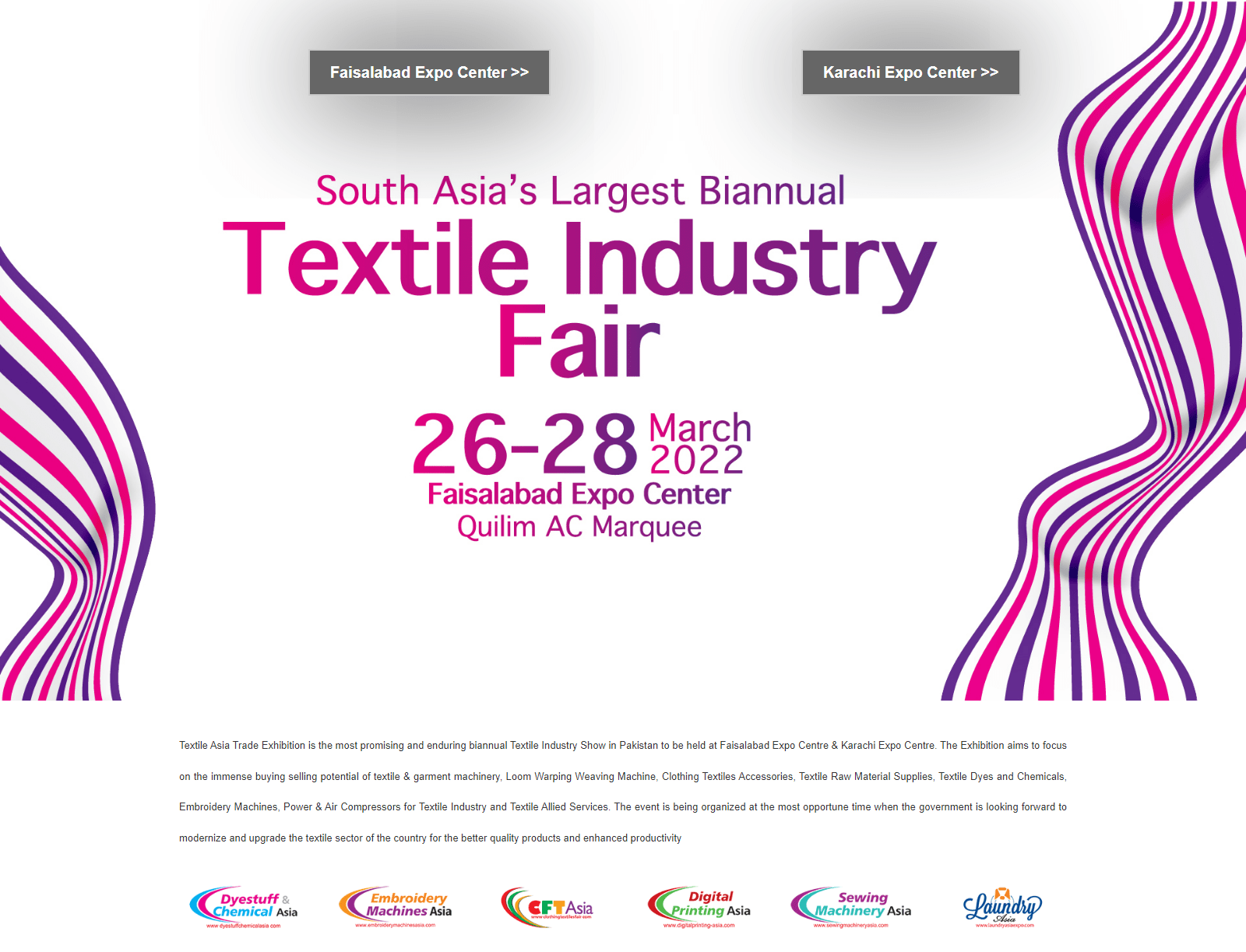 Textile Asia Textile Machinery Exhibition is the most promising and enduring biannual Textile Industry Show in Pakistan.